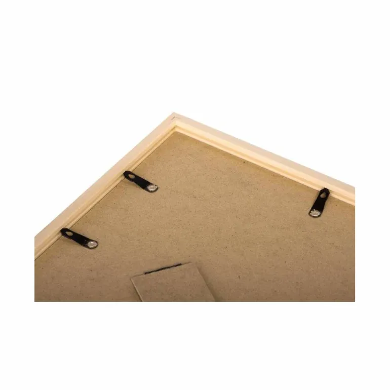 Rammen har medfølgende støtteplade i masonit og papir beklædning i lysægte hvid.