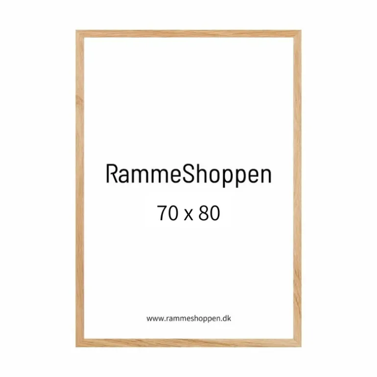 - Den miljøvenlige egetræsramme 70 x 80 cm har breddemålene 12 mm set fra fronten.