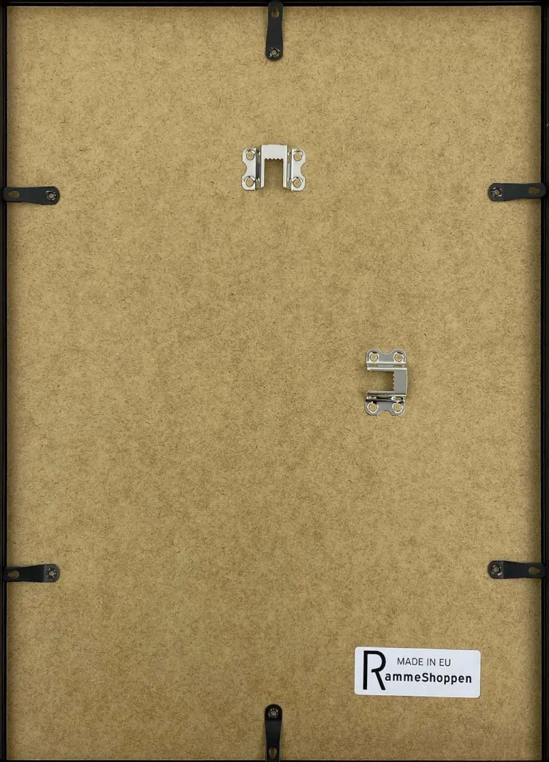 Rammen har fastmonteret ophængsbeslag så den kan hænge både vandret og lodret.