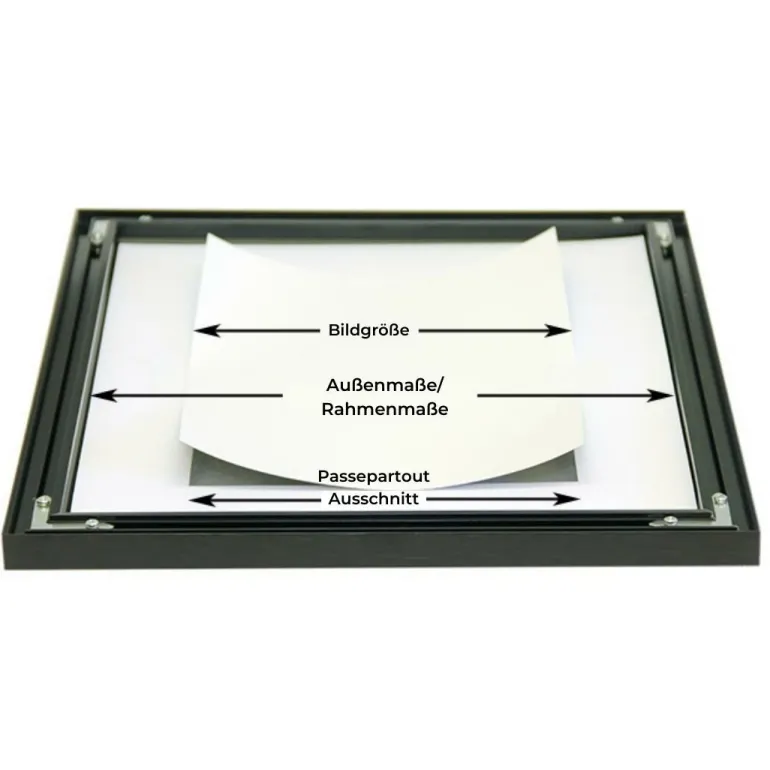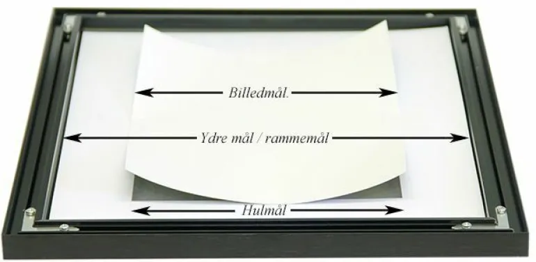 Forsiden af passepartout’en er matsort, hvilket gør den diskret og ikke tager fokus fra selve motivet i billedet. Den sorte farve er meget mere alsidig end man skulle tro, og kan bruges til alle slags motiver.