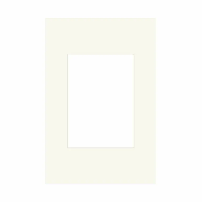 Forsiden af passepartout’en er let varm porcelænshvid med struktur, hvilket gør den velegnet til motiver, der har varme farver og/eller en hvid baggrund, der ikke er kridthvid eller kold hvid.