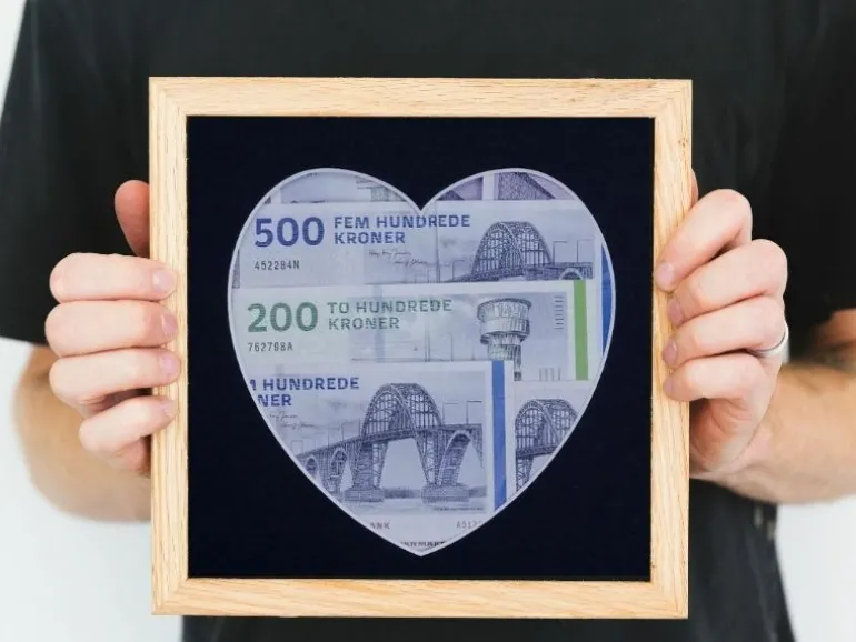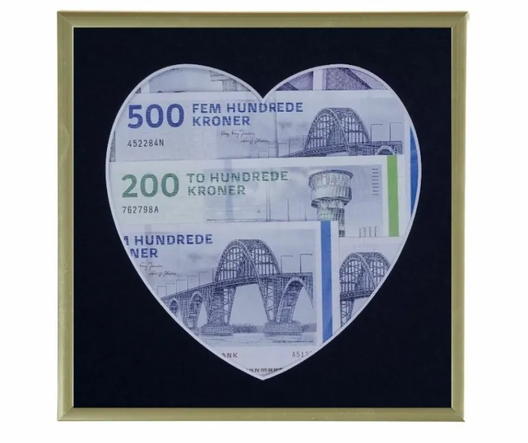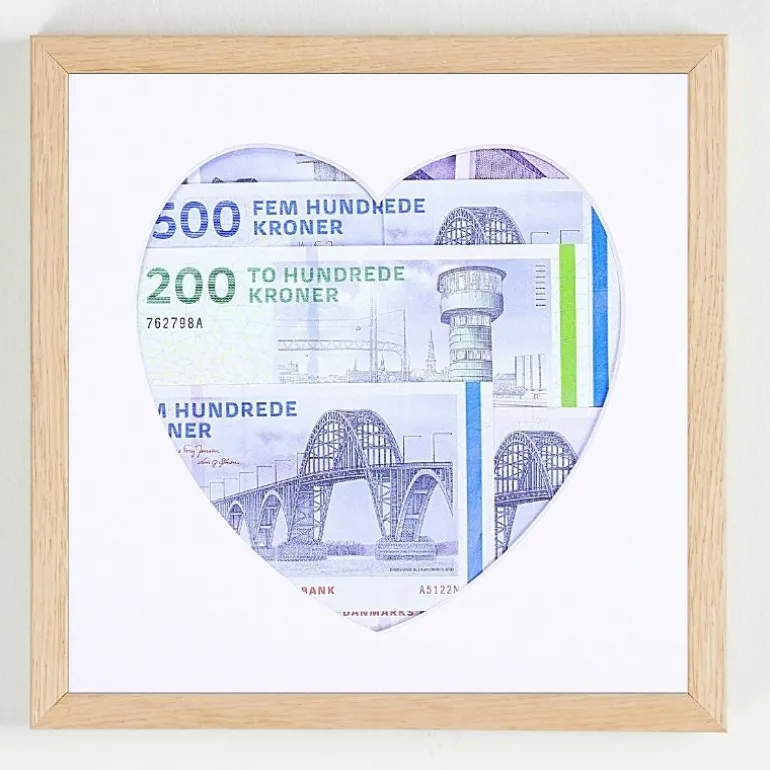 Giv en kærlig pengegave i en ramme med et hjerteudskåret passepartout