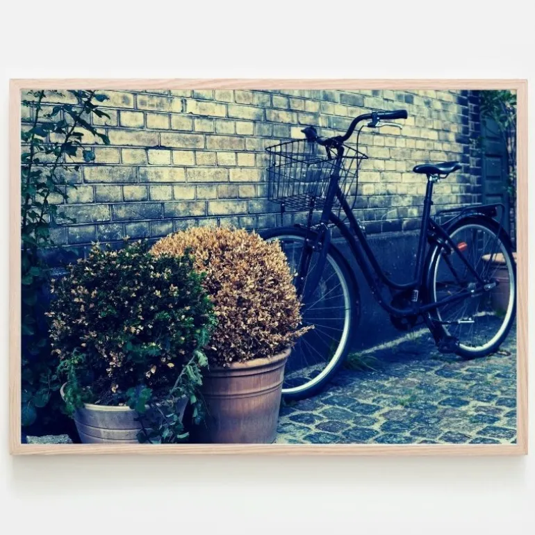 Plakat med fotografisk fremstilling af bylivet på Nørrebro hvor de fleste har en cykel der bliver flittigt brugt.