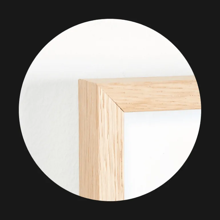 Vores miljøvenlige egetræsrammer har nemme og praktiske hængebeslag med øjer, så rammen kan hænge både vandret og lodret.