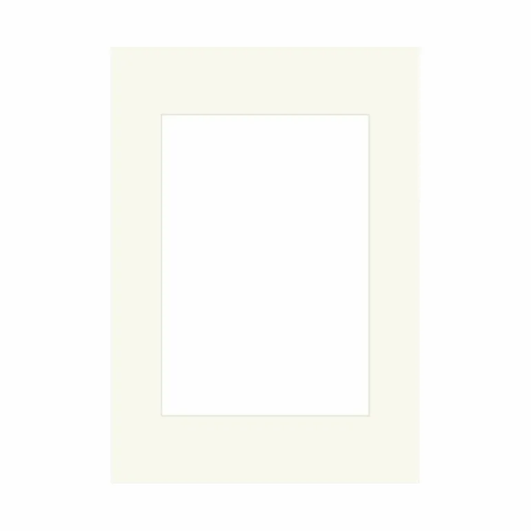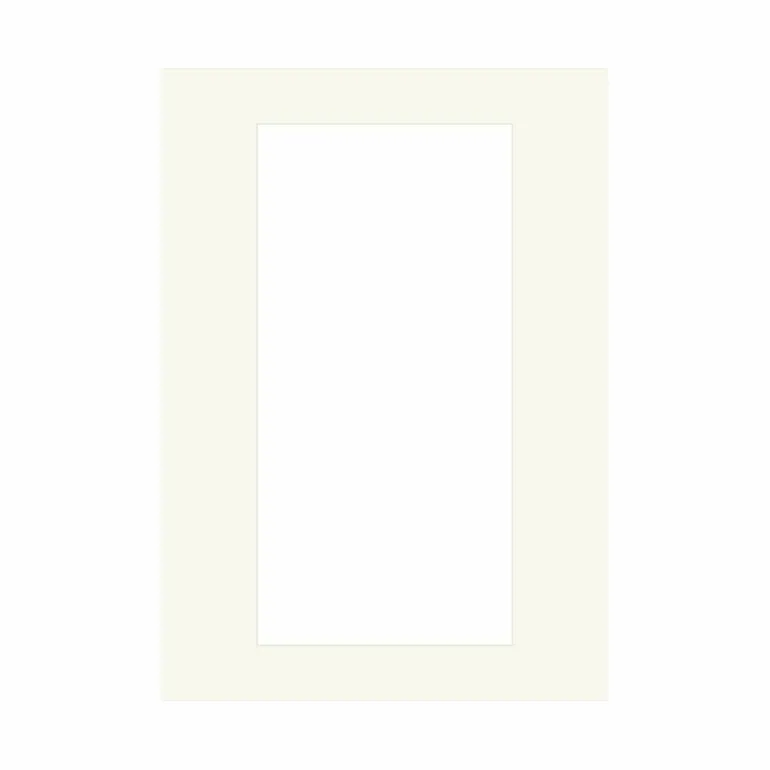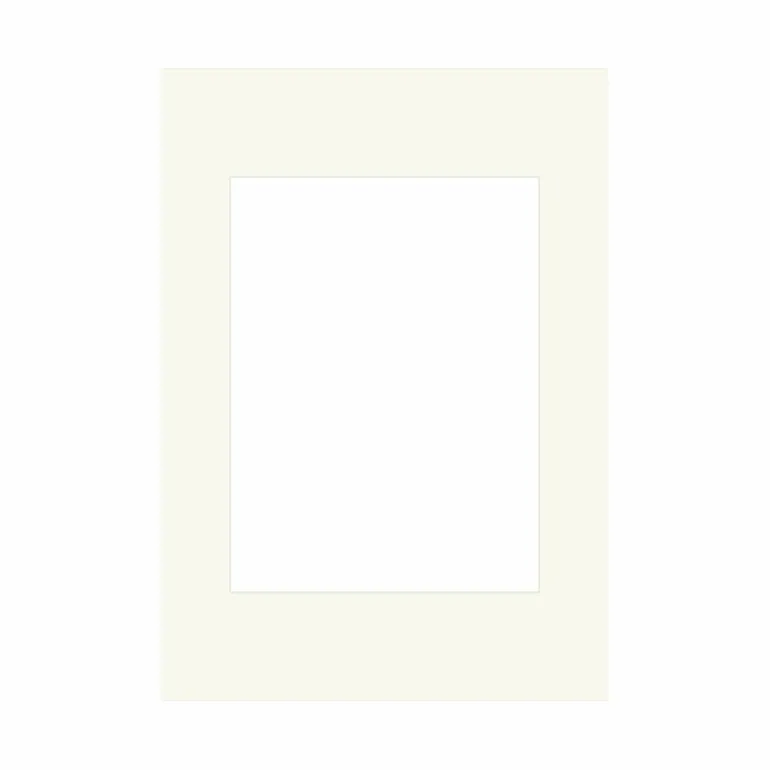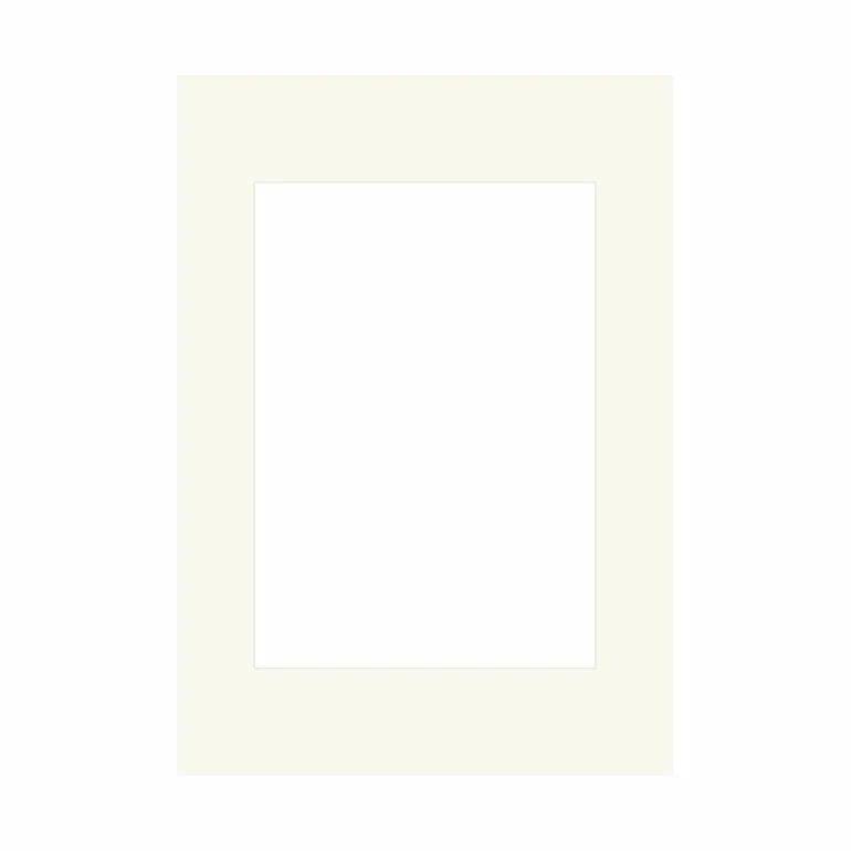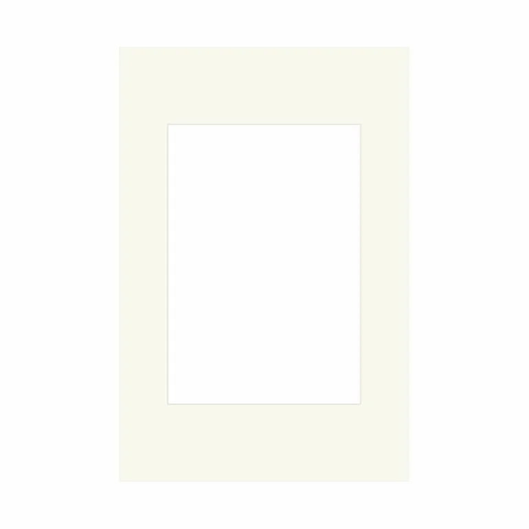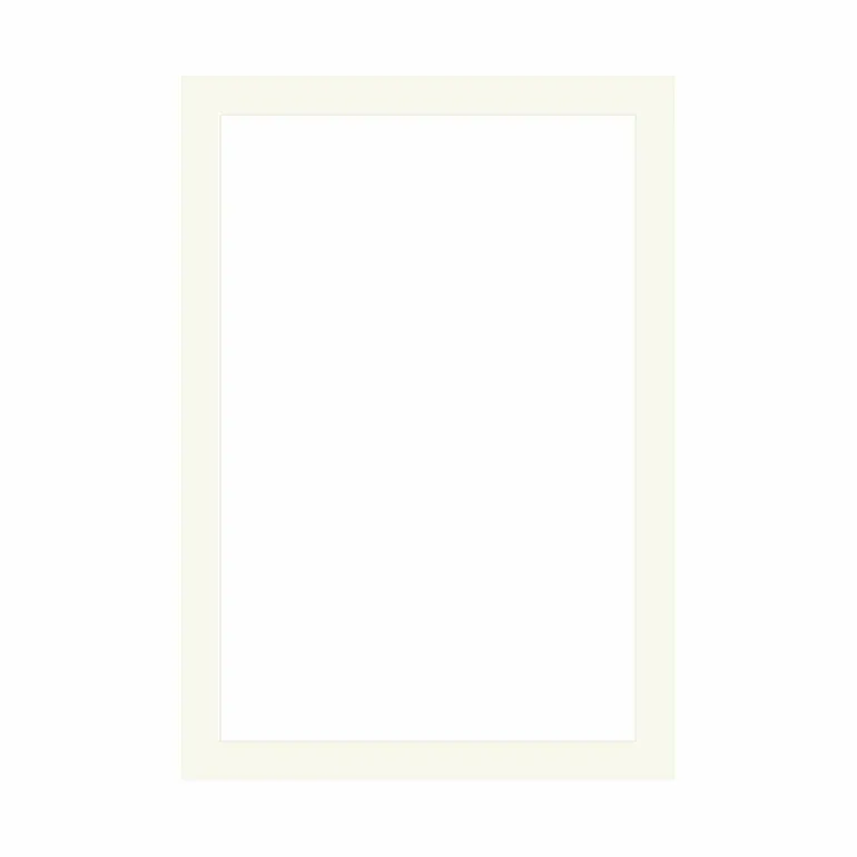 Forsiden af passepartout’en er let varm porcelænshvid med struktur, hvilket gør den velegnet til motiver, der har varme farver og/eller en hvid baggrund, der ikke er kridthvid eller kold hvid.