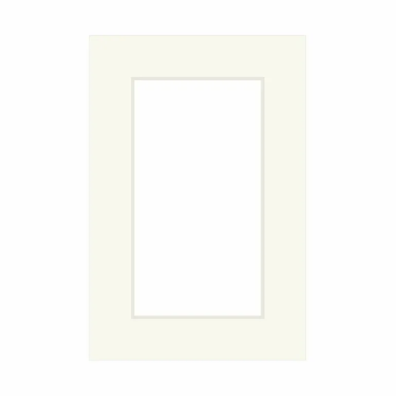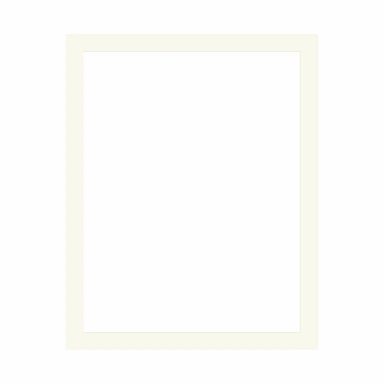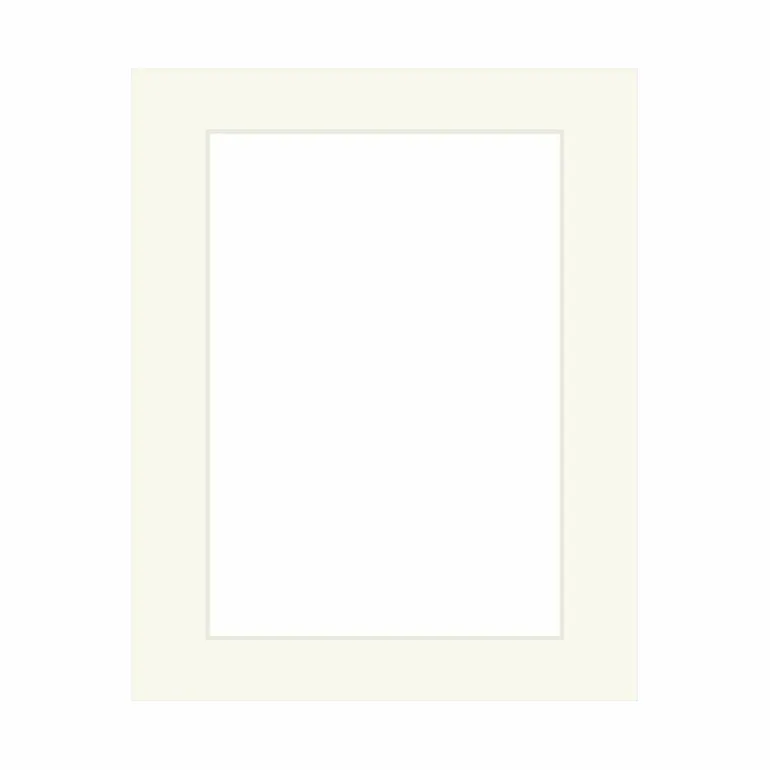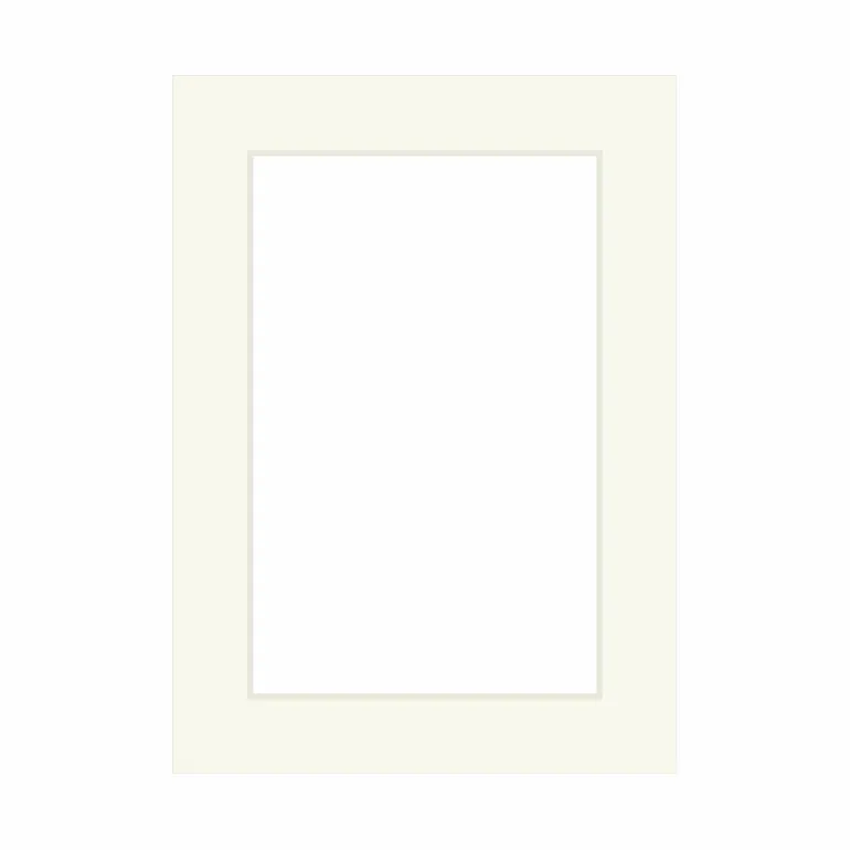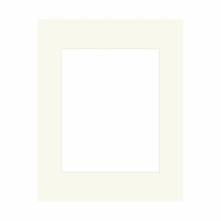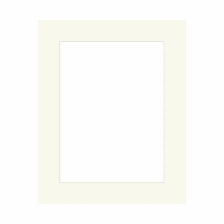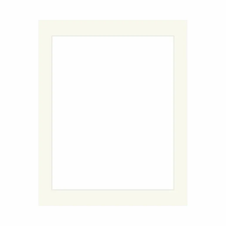 Forsiden af passepartout’en er let varm porcelænshvid med struktur, hvilket gør den velegnet til motiver, der har varme farver og/eller en hvid baggrund, der ikke er kridthvid eller kold hvid.