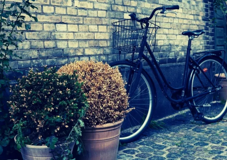 Plakat med fotografisk fremstilling af bylivet på Nørrebro hvor de fleste har en cykel der bliver flittigt brugt.